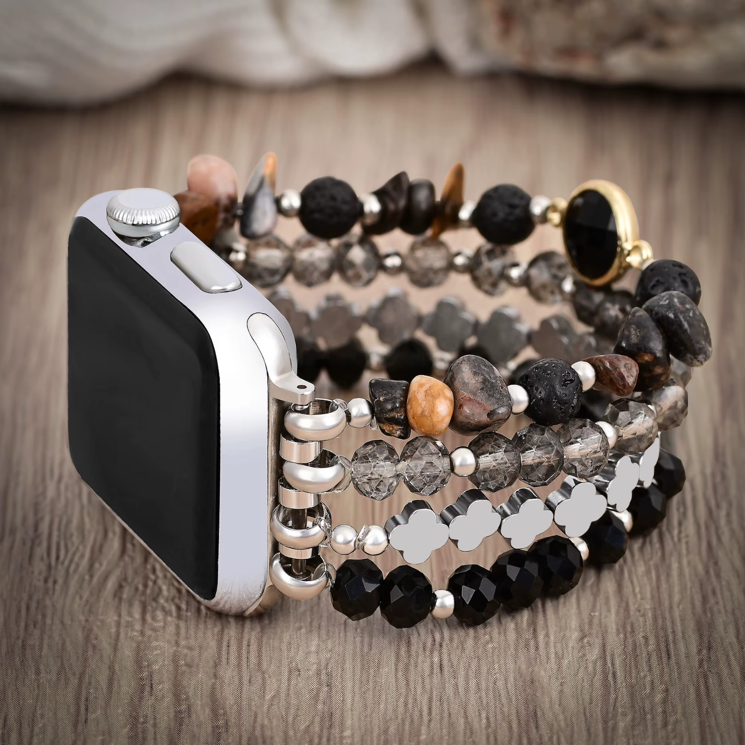 One of our best examples is our Crystal-Beaded Apple Watch Jewelry Band, crafted with:
